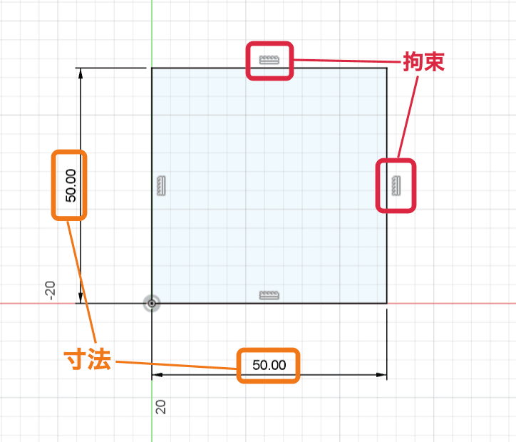 拘束と寸法の設定